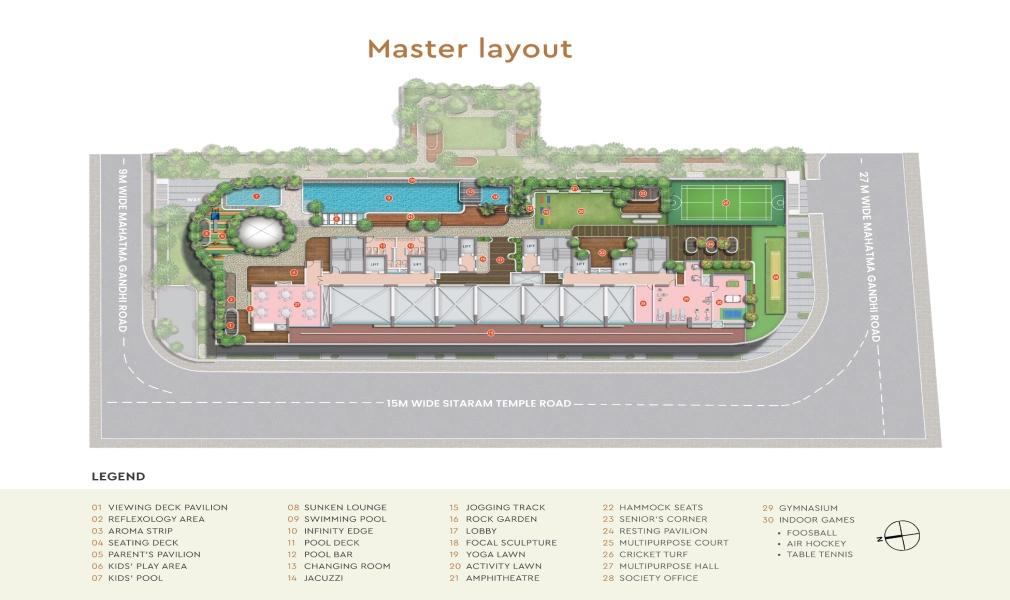 Disclaimer : All layouts, locations, plans, specifications, designs, elevations, features, amenities, facilities, services, product/equipment type and brand mentioned are indicative of the kind of development proposed in this Project and its finality is subject to the approval of the respective authorities or as required by the Promoter/Developer in the interest of continuing improvement, without prior notice or obligation. Minor variations (+/- 2%) in actual carpet areas may occur as a result of design/construction variations, manufacturing tolerances and column projections. The pictures/images and perspective views of the premises/building/layout are an artist’s impression of the development and for representational purposes only and are not a part of actual deliverables. This printed material does not constitute an offer and/or contract of any type between the Promoter/Developer and the Purchaser. All transactions in respect of this Project shall be subject to the terms and conditions of the Agreement for Sale to be entered into between the Promoter/Developer and the Purchaser.